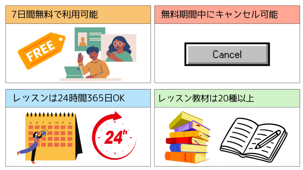 DMM英会話は7日間無料で体験レッスンができ、じっくり試してから始められるのが良いです、